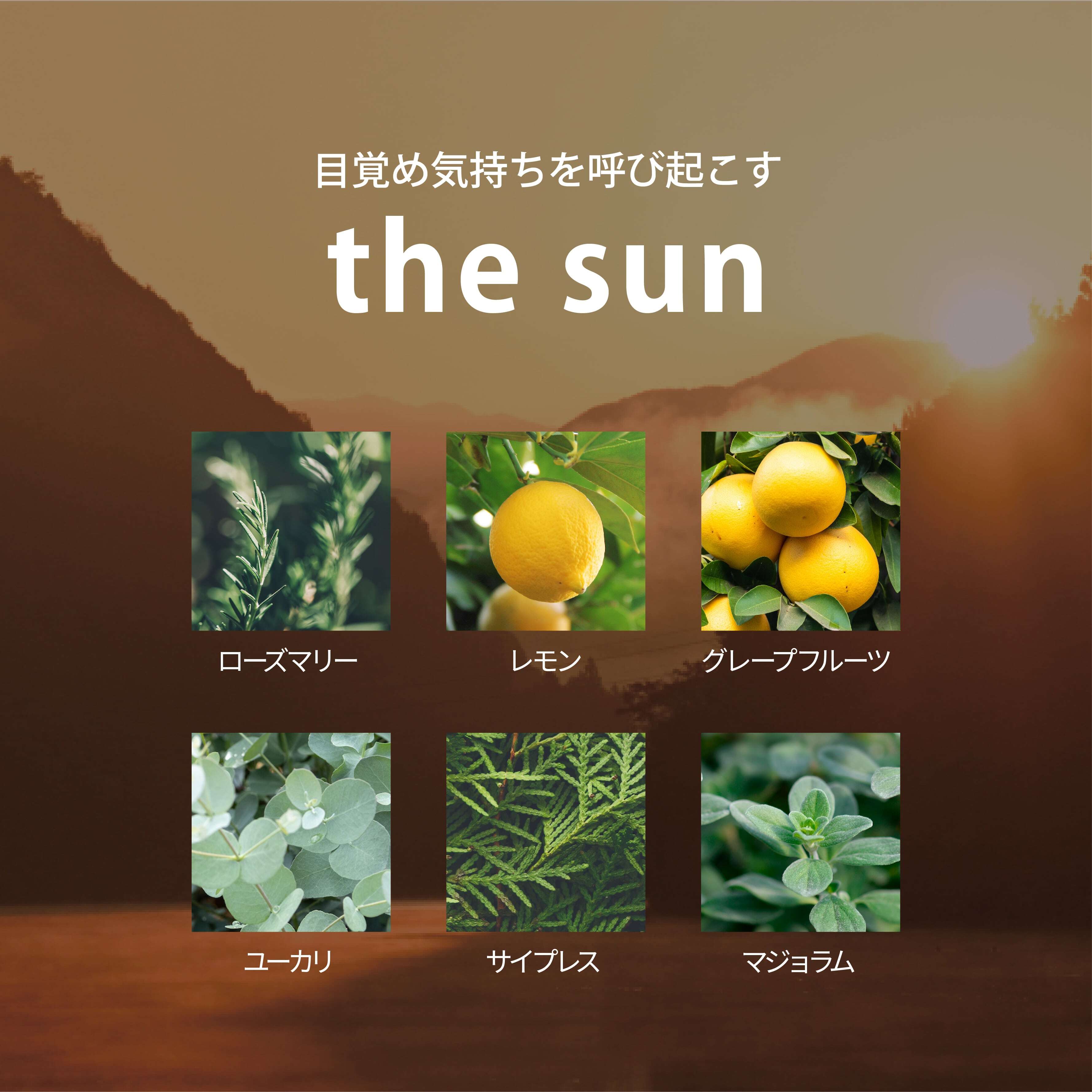 • 太陽のアロマ:ローズマリー/レモン/グレープフルーツ/ユーカリ/サイプレス/マジョラム